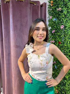 Blusa de estampado floral suave, es una prenda que destaca por su diseño gráfico o patrón impreso en la tela, lo que le otorga un estilo único y vibrante.