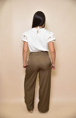 La Blusa Giorgia eleva el blanco con mangas globo y recortes de encaje que iluminan el look. Femenina, fresca y perfecta para verte casual con un toque sofisticado.