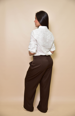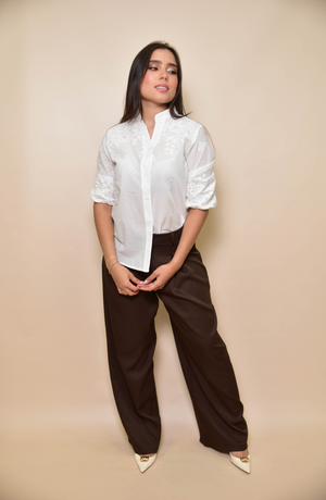 La Camisa Megan eleva la clásica camisa blanca con bordados delicados y un corte relajado que estiliza. Atemporal, fresca y perfecta para ocasiones especiales (o para pulir un look de diario).