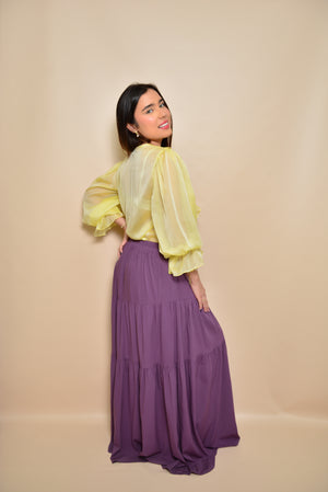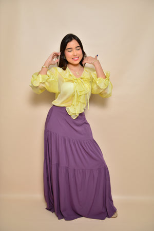Esta falda violeta tiene un diseño casual ideal para cualquier ocasión, tiene elástico en la cintura para lograr el ajuste perfecto ofreciendo comodidad y estilo al mismo tiempo. Perfecta para combinar con tus blusas favoritas y crear looks únicos y versátiles. ¡Haz que tu outfit luzca elegante y casual al mismo tiempo con esta falda! 100% rayón viscosa.