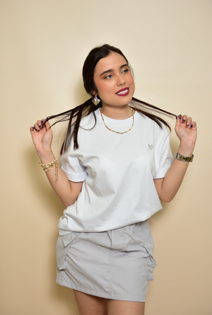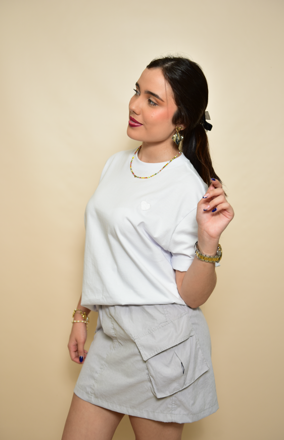 Mini falda cargo, con pretina encauchada en tonos que fusionan con tus looks dándoles un aire muy fresco, natural y de confort.