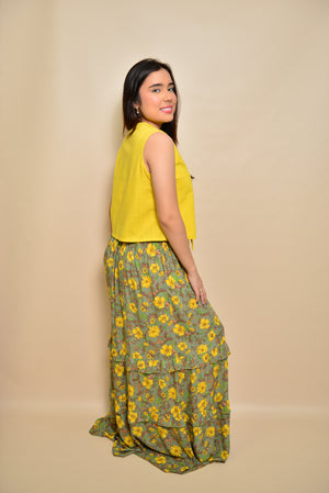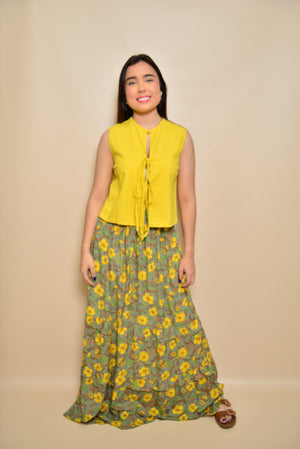 Falda con un hermoso estampado floral que evoca frescura y elegancia. Confeccionada en una combinación perfecta de rayón y viscosa, ofrece una textura ligera y transpirable, ideal para climas cálidos. El estampado floral de colores vibrantes aporta un aire alegre y sofisticado, cuenta con elástico en la cintura para lograr el ajuste perfecto mientras que la mezcla de tejidos proporciona comodidad y durabilidad.