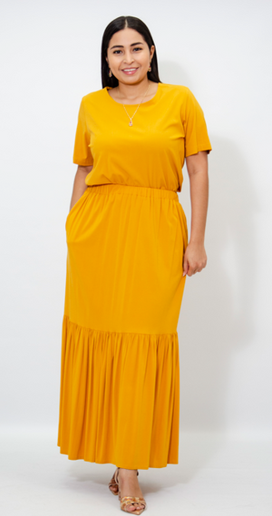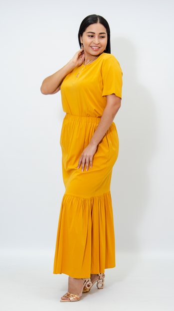 La falda Yuridia es una prenda fresca, cómoda y con un toque vibrante. El color mostaza, cálido y lleno de personalidad, aporta un aire de sofisticación y energía, haciendo que esta falda sea ideal para resaltar en cualquier conjunto. El diseño de la falda tiene una cintura elástica, lo que le proporciona un ajuste cómodo y flexible, adaptándose fácilmente a diferentes tipos de cuerpo. Esta característica hace que la prenda sea práctica, ya que no requiere de cinturón ni ajustes adicionales, y ofrece una sensación de comodidad y libertad durante su uso.