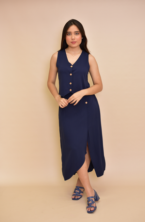 SET AZUL TURQUI DE BLUSA CORTA TIPO CHALECO Y FALDA CON ABERTURA EN PIERNA.