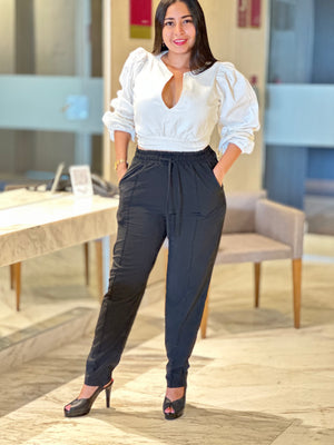 Pantalón Negro intenso, versátil y atemporal, perfecto para cualquier ocasión. Ideal para oficina o eventos elegantes con blusa y tacones.