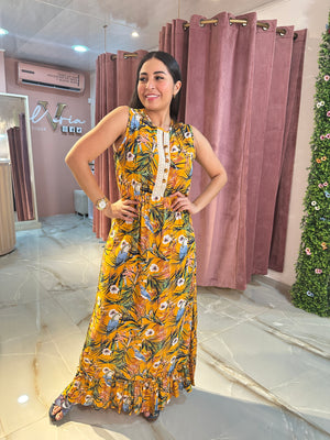 Vestido diseñado en 100% rayón-viscosa, en colores tropicales perfectos para proporcionar un look campestre sofisticado y versátil. Perfecto para cualquier ocasión, resalta tu estilo y personalidad con este vestido cómodo y único.
