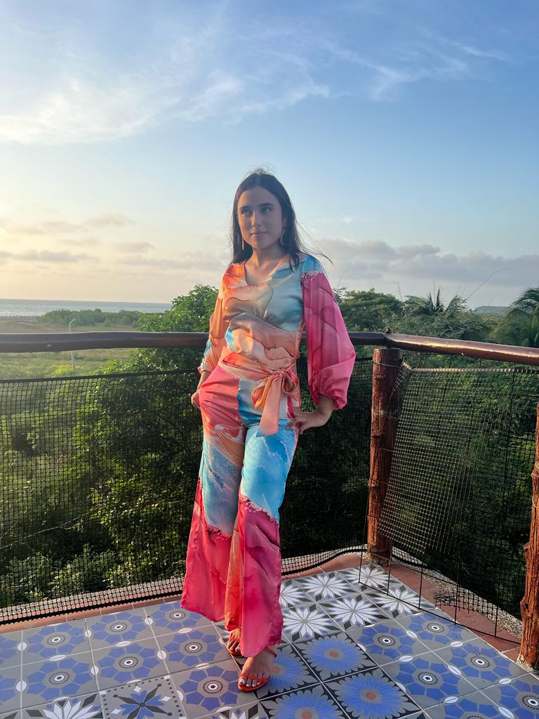 Esta es una blusa degradada en tela de seda es una prenda sofisticada y moderna que presenta un diseño de transición de colores, creando un efecto visual muy atractivo. La tela de seda, suave y fluida, le otorga un acabado brillante y un movimiento elegante, ideal para ocasiones especiales o para un look de diario más refinado.