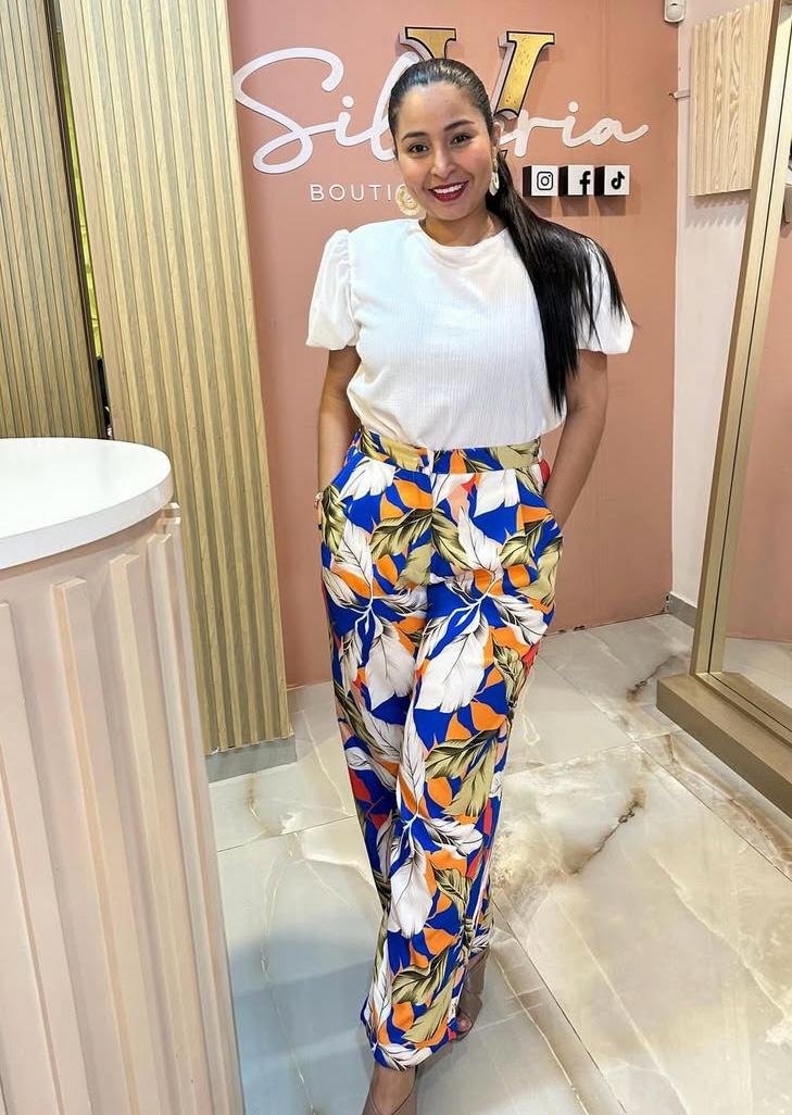 Este pantalón largo es una prenda llamativa y versátil que combina comodidad con estilo. Confeccionado en una tela fluida y liviana, su caída es natural y elegante, adaptándose con movimiento al andar. Lo que lo hace destacar es su estampado, que puede variar desde motivos florales, geométricos, tropicales o abstractos, dependiendo del diseño y la ocasión.