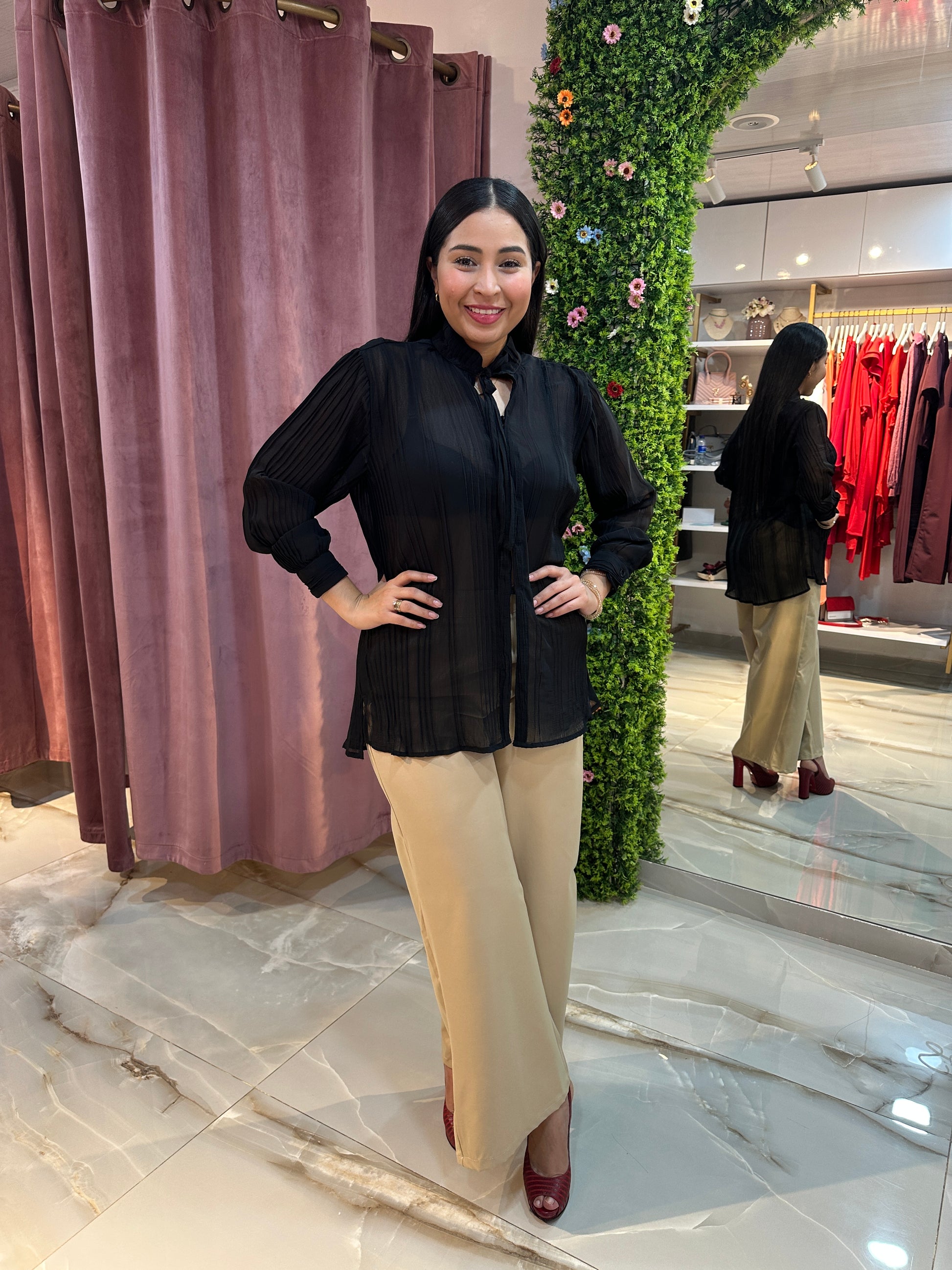 Este pantalón color caqui tiene un acabado con brillo sutil, cuenta con un estilo de bota ancha, lo que ofrece un look clásico y elegante. Su cintura con resorte en la parte trasera, garantiza un ajuste cómodo y flexible, adaptándose a diferentes tipos de cuerpo. Hecho con material de alta calidad, proporciona comodidad y durabilidad para el uso diario.